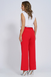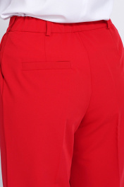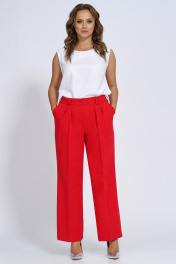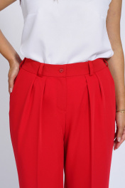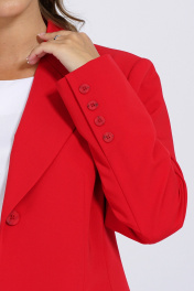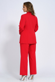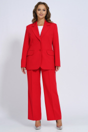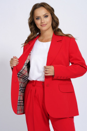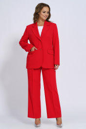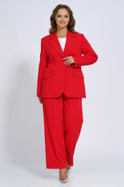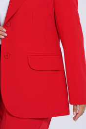 Костюм состоит из жакета и брюк. Жакет женский выполнен из костюмной ткани, на подкладки, прилегающего силуэта, втачного покроя. Предназначен для повседневной носки. Жакет удлиненный, чуть ниже линии бедер. Линия плеча естественная, повышенная плечевой накладкой толщиной 0,7 см. Это придает более четкую форму плечевого пояса, и аккуратный вид всего изделия. Пройма неглубокая, умеренно широкая. По линии груди, талии и бедер изделие неплотно прилегает к фигуре, к низу слегка расширенное. На переде обработаны прорезные карманы в рамку с клапаном, нагрудная вытачка переведена вниз и в подрез кармана. По переду обработаны рельефы, идущие от середины линии проймы до низа изделия. Спинка со средним швом и рельефами, идущими от середины линии проймы до низа изделия. Воротник пиджачного типа. Рукав втачной, в нижней локтевой части рукава обработана шлица с 4-мя отделочными пуговицами. Борт застёгивается на 2 пуговицы. Брюки свободные, со стрелками, на передних половинках обработаны карманы с подрезным бочком, брюки застёгиваются на тесьму молнию, пояс – петлю, пуговицу. Задняя часть пояса собрана на эластичную тесьму. Длина жакета по спинке во всех размерах 70 см, ширина жакета на уровне глубины проймы в размере 44 - 48см, 46 - 50см, 48 - 52см, 50 - 54см, длина рукава в размере 44 - 59см, 46 - 60см, 48 - 61см, 50 - 62см, ширина брюк на уровне линии бёдер в размере 44 - 57см, 46 - 58см, 48 - 59см, 50 - 60см, длина бюк во всех размерах 104см.