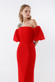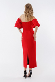 Корсетное платье длины миди из текстильной ткани. Детали: прилегающий силуэт, перед и спинка с рельефными швами, рукава короткие пышные с резинкой, застежка на потайную молнию в среднем шве спинки, платье на подкладке. Вариант мини представлен под арт. 2252 Длина платья по боковому шву около 103/104 см, длина юбки около 84 см, длина рукава около 26 см