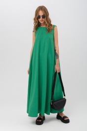 Платье длины макси с фигурной спинкой. Детали: трапециевидный силуэт, нагрудные вытачки, средние швы переда и спинки, боковые карманы Длина платья по боковому шву около 110,5 см