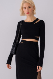 Джемпер асимметричный укороченный из трикотажа PiRS 3544 черный