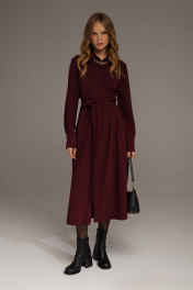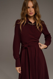 Асимметричное платье-рубашка из текстильной струящейся ткани. Детали: трапециевидный силуэт, нагрудные вытачки, рубашечный воротник, потайная застежка-планка на петли и пуговицы, рукава втачные длинные на манжетах, боковые карманы. Платье с отлетной кокеткой, имитирующую жилет и поясами, при помощи которых можно регулировать прилегание Длина по спинке около 118 см, длина рукава около 61 см