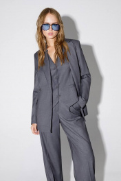 Классический жилет из текстильной ткани. Детали: жилет полуприлегающего силуэта с фигурным низом, застежка на петли и пуговицы, на подкладке Длина жилета по спинке около 48,5 в размерах 40-46 и около 51,5 см в размерах 48-52