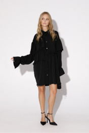 Демисезонное платье-рубашка из текстиля с воланами PiRS 4788 черный