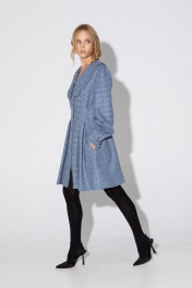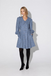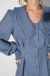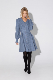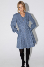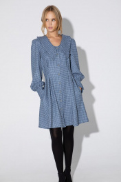 Мини-платье с акцентным воротником. Детали: X- силуэт, перед и спинка с глубокими застроченными складками по талии, рукава длинные втачные со сборкой по окату и притачными манжетами с отделкой, застежка на петли и декоративные пуговицы, карманы в швах. Длина платья по спинке около 88 см в размерах 40-46 и около 92 см в размерах 48-52, длина рукавов около 62 см.