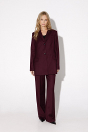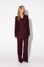 Деловой текстильный костюм-двойка из жакета и брюк с высокой шлицей PiRS 4822 бургунди