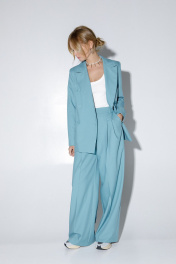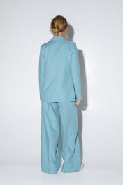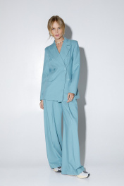 Текстильный двубортный блейзер свободного покроя. Детали: жакет прямого силуэта, пиджачный воротник, перед с прорезными карманами, двубортная застежка на петли и пуговицы, спинка со средним швом, рукава втачные двухшовные, на подкладке. Длина по спинке около 66 см в размерах 40-46 и около 69 см в размерах 48-52, длина рукавов около 61 см .
