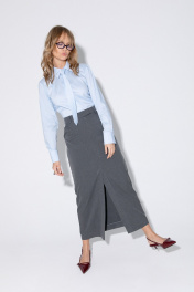 Комплект из приталенной хлопковой рубашки с галстуком и юбки PiRS 5360 голубой+графит