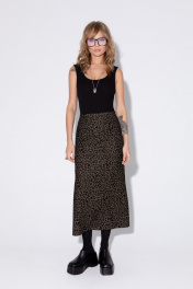 На каждый день комплект из джемпера и юбки с анималистичным принтом PiRS 5427 черный+ коричневый