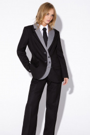 Асимметричный черный жакет с двойным воротником из текстиля PiRS 5483 черный_с_серым