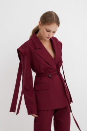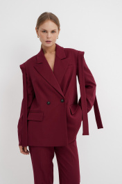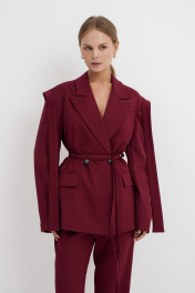 Костюм двойка из текстильных брюков и жакета для делового стиля PiRS 5539 марсала