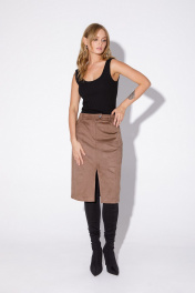 Юбка карандаш с высоким разрезом из искусственной замши PiRS 5566 бежевый