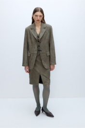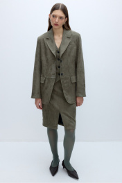 Костюм двойка из искусственной замши жакет и юбка PiRS 5635 хаки