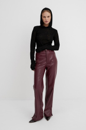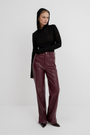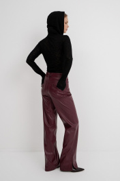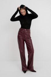 Эко-кожаный комплект: брючный костюм с лонгсливом и прямыми брюками PiRS 5744 черный+ марсала