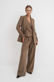 Костюм-тройка жакет жилет и широкие брюки из текстиля PiRS 5761 бежевый