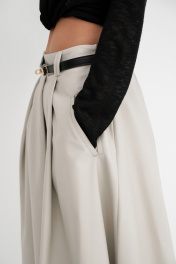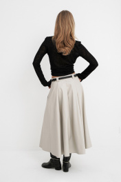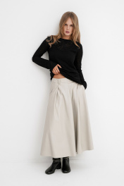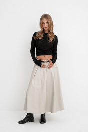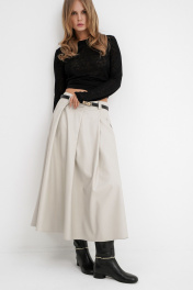 Комплект из трикотажного лонгслива и юбки из экокожи PiRS 5765 черный+ серо-бежевый