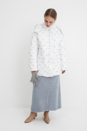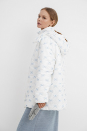 Стеганая оверсайз куртка с принтом. Детали: прямой силуэт, свободый покрой, спущенная линия плеча, капюшон, функциональные карманы, застежка на молнию и пробивные металлические кнопки, куртка на утепленной синтепоном подкладке. Наполнитель куртки ISOSOFT толщиной 200 г/м2. Длина по спинке около 71 см в размерах 40-46 и около 73 см в размерах 48-52, длина рукава+ плечо около 53+8 см