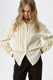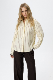 Хлопковая свободная рубашка в полоску с двойными воротниками и манжетами.