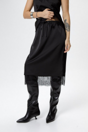 Костюм-двойка в бельевом стиле из топа с фигурным лифом и прямой юбки на резинке с кружевом.