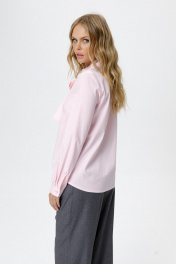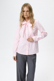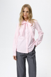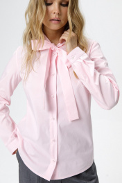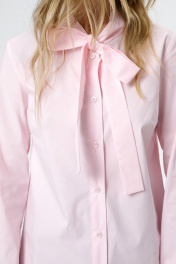 Хлопковая рубашка с воротником-бантом. Детали: рубашка прямого силуэта, застежка на петли и пуговицы, длинные рукава с притачными манжетами. Длина рубашки по спинке около 63 см в размерах 40-46 и около 65 см в размерах 48-52. Длина рукава около 60,5 см