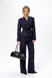 Приталенный жакет со съемным шарфиком. Детали: жакет полуприлегающего силуэта, цельнокроеный воротник-стойка, рельефные швы переда и спинки, функциональные карманы, застежка на петли и пуговицы, на подкладке. В комплекте съемный шарфик. Длина жакета по спинке около 56 см в размерах 40-46 и около 58,5 см в размерах 48-52, длина рукава около 62,5 см.