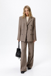 Двубортный жакет свободного кроя. Детали: жакет свободного покроя и полуприлегающего силуэта, двубортная застежка на петли и пуговицы, отрезные бочки, пиджачный воротник, функциональные карманы, жакет на подкладке. Длина по спинке около 69 в размерах 40-46 и около 72 см в размерах 48-52, длина рукавов около 62 см