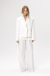 Юбка-баска килт в полоску. Детали: притачной пояс с застежкой на петлю и пуговицу. Приобрести жакет с фото можно по арт. 6377, брюки по арт.6378