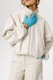Шорты-бермуды до колена из экокожи (приобрести бомбер с фото можно по арт. 6633). Детали: широкие бермуды, притачной пояс со шлёвками, застёжка на молнию и кнопку, перед с наклонными карманы, спинка с кокеткой и двумя накладными карманами. Длина по боковому шву с поясом около 60 см в размерах 40-52. Длина по внутреннему шву около 31 см в размерах 40-52.