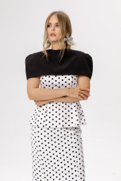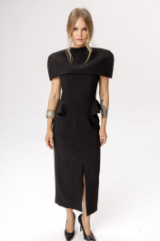 Укороченный кейп на подкладке (приобрести платье с фото можно по арт. 6638, приобрести топ с фото можно по арт. 6643, приобрести юбку с фото можно по арт. 6644). Детали: круглая горловина, вытачками по плечам и плевые накладки, застежка на навесную петлю и пуговицу, на подкладке. Кейп не имеет переда и спинки. Длина кейпа около 21 см в 40 размере, около 22 см размерах 42-46 и около 23 см в размерах 48-53