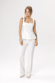 Приталенная блуза с вырезом «каре» (приобрести кейп с фото можно по арт. 6640, приобрести юбку с фото можно по арт. 6644). Детали: прилегающий силуэт, кареобразный вырез горловины переда и спинки, рельефные швы, потайная застежка по спинке, на подкладке. Длина по боковому шву около 56 см в размерах 40-46, около 58,5 см в размерах 48-52.