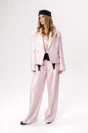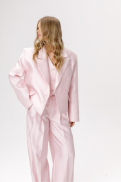 Укороченный оверсайз жакета с необработанными проймами (приобрести жилет с фото можно по арт. 6660, приобрести брюки с фото можно по арт. 6661, приобрести баску с фото можно по арт. 6551). Детали: жакет прямого силуэта, пиджачный воротник, двубортная застежка на две петли и пуговицы, функциональные карманы, спинка с фигурной кокеткой, рукава втачные, жакет на подкладке. Длина по спинке около 55 см в размерах 40-46 и около 56,5 см в размерах 48-52, длина рукавов около 61 см