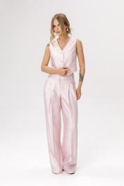 Укороченный жилет (приобрести жакет с фото можно по арт. 6659, приобрести брюки с фото можно по арт. 6661, приобрести баску с фото можно по арт. 6551). Детали: жилет прямого силуэта с фигурным низом, талиевые вытачки, застежка на петли и пуговицы, функциональные карманы, на подкладке. Длина по спинке около 39 см в размерах 40-46 и около 43 см в размерах 48-52.