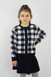 Жакет второго слоя одежды, прямого силуэта, с длинным рубашечным рукавом. Круглый вырез горловины обработан бейкой. Застежка на петли и пуговицы Ø15 мм. Количество пуговиц - 6+1 шт. на рост 122/128. Количество пуговиц 7+1 с роста 146.