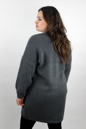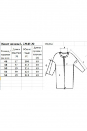 Жакет второго слоя одежды, прямого силуэта с длинным рубашечным рукавом и накладным карманом. Край борта регулярный, концы стачены, росток окантован. Застежка центральная на петли и пуговицы на ножке под покраску в цвет изделия.