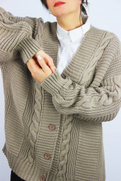 Жакет второго слоя одежды прямого силуэта. Со спущеной линией плеча, с длинным рубашечным рукавом. Застежка на петли и пуговицы (4шт+1). Край борта регулярный. Вырез горловины спинки закеттлеван бейкой-сдвоенная кулирная гладь 1,4см.+-0,3.