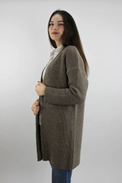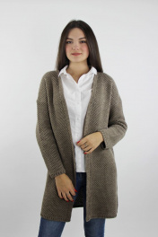 Жакет женский,второго слоя одежды,с длинным втачным, спущенным рукавом.Борт цельновывязан. Низ изделия и рукавов заработан ластиком 1х1.