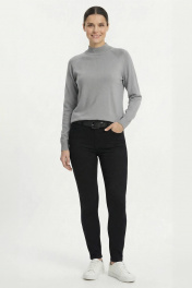 Свитер прямого силуэта с длинным рукаом "реглан". Низ изделия и рукавов заработан ластиком 1х1. Воротник - двойная ластичная стойка