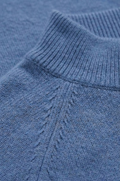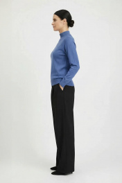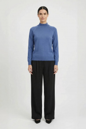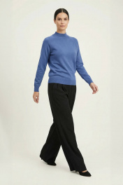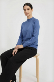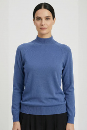 Свитер прямого силуэта с длинным рукаом "реглан". Низ изделия и рукавов заработан ластиком 1х1. Воротник - двойная ластичная стойка