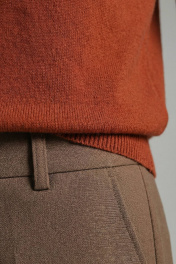 Свитер прямого силуэта с длинным рукаом "реглан". Низ изделия и рукавов заработан ластиком 1х1. Воротник - двойная ластичная стойка