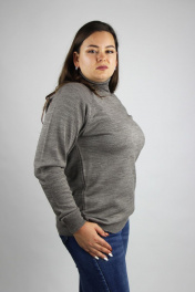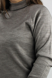 Свитер прямого силуэта, второго слоя одежды, с длиным рукавом реглан. Круглый вырез горловины обработан высоким ластичным воротником-ластик1х1.Низ стана и рукавов заработан ластиком 1х1