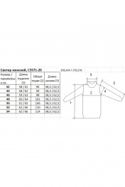 Свитер женский,второго слоя одежды ,с длиным втачным рукавом.Круглый вырез горловины обработан отложным воротником ластик 1х1 высотой в готовом виде 17 см (полукеттлевка). Низ стана заработан ластиком 1х1. Низ рукавов заработан ластиком 1х1