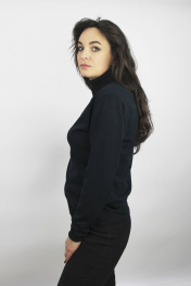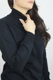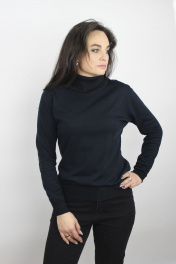 Свитер женский,второго слоя одежды,регулярный, с длинным втачным рукавом. Круглый вырез горловины обработан высоким ластичным воротником-ластик1х1(50% выкл. игл) высотой в готовом виде 16см+-1,0см.