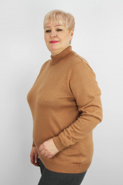 Свитер прямого силуэта с длинным втачным рукавом. Воротник- двойная прикеттлёванная стойка высотой в гот. виде 6,0+-0.5см. Низ стана и рукавов заработан ластиком 1х1 высотой в гот. виде 5,0см+-0,5см.