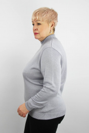 Свитер прямого силуэта с длинным втачным рукавом. Воротник- двойная прикеттлёванная стойка высотой в гот. виде 6,0+-0.5см. Низ стана и рукавов заработан ластиком 1х1 высотой в гот. виде 5,0см+-0,5см.