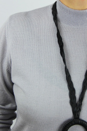 Cвитер прямого силуэта с длинным втачным рукавом.Круглый вырез горловины обработан двойным воротником-стойкой 5,5+-0,5см.