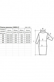 Платье с удлиненной линией плеча заужено книзу. Цельнокроенная стойка горловины подогнута на изнанку, закреплена по плечевым швам. Низ стана и рукавов заработан сдвоенной кулирной гладью высотой в гот. виде 0,5 см +_ 0,3 см. На левой половине переда украшение.