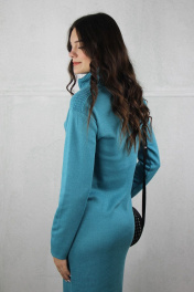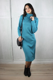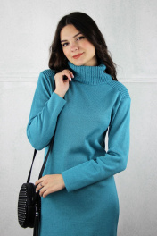 Платье женское, второго слоя одежды,полуприлегающего силуэта, со спущеной линией плеча с втачным рукавом. Круглый вырез горловины. Воротник прикеллтевывается (одинарная полукетлевка). Высота воротника 23,0+-1,0см. По плечевым срезам декоративные кокетки (втавки). Низ стана и рукавов заработан сдвоенной кулирной гладью