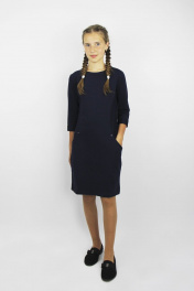 Платье с лодочной горловиной и карманами, синее, до бедра Полесье С4834-16 6С0786-Д43 152,158 м.синий