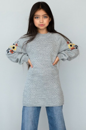 Платье укороченное вязаное шерстяное с длинным рукавом-реглан Полесье С4880-17 8С0175-Д43 146,152 горная_дымка