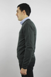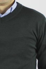Джемпер незначительно заужен к низу с длинным рукавом.V-образный вырез горловины обработан двойной ластичной бейкой (полукетт), высотой в гот. виде 2,5см+-0,2см. Низ изделия и низ рукавов заработан ластиком 1х1