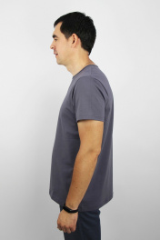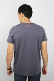 Джемпер мужской второго слоя одежды, прямого силуэта слегка заужен книзу, с коротким втачным рукавом. Круглый вырез горловины окантован бейкой. По спинке двухцветная печать. Низ изделия и рукавов подогнут.